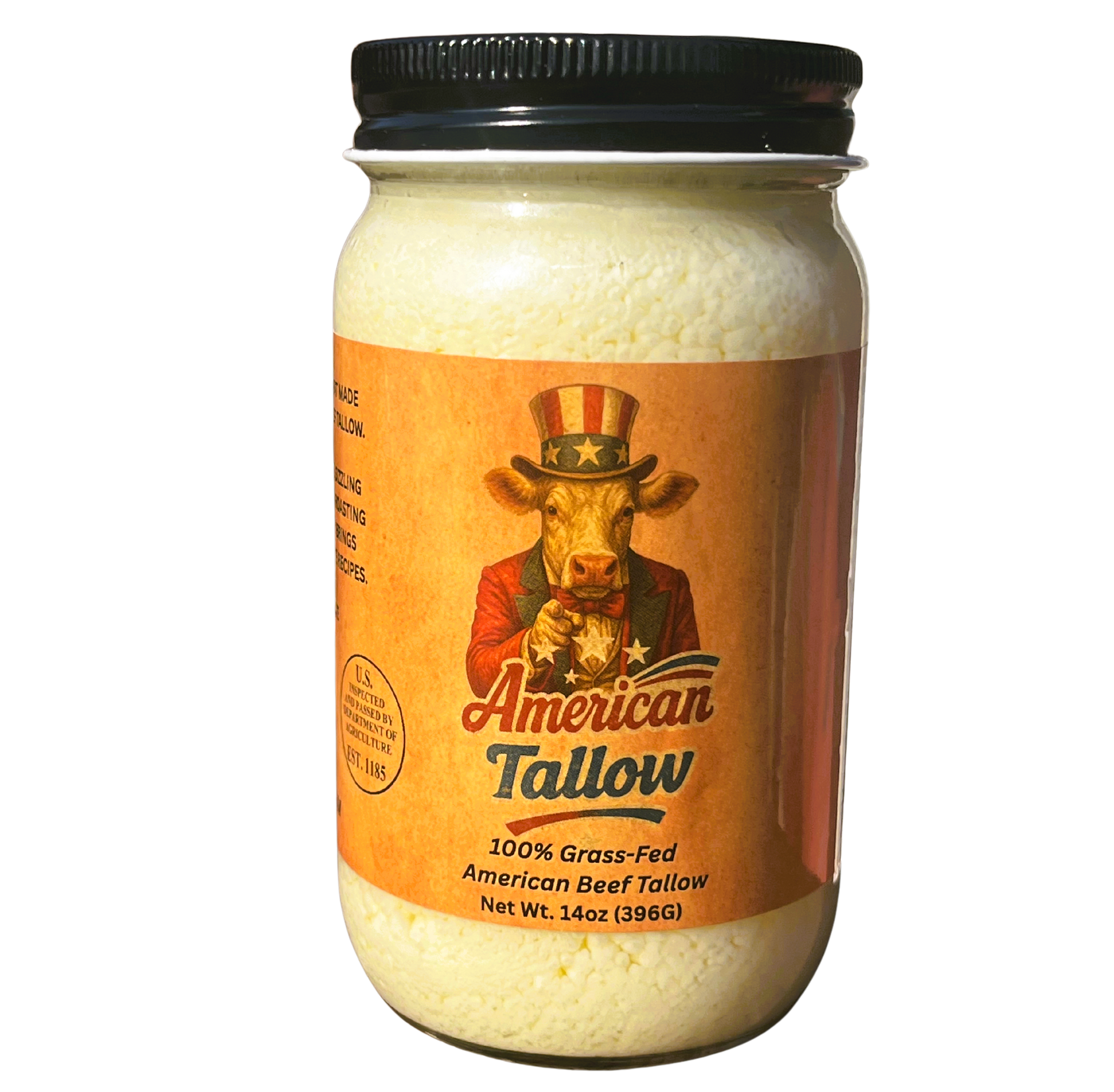 American Tallow, 100% Grass-Fed, Pasture-Raised, Non-GMO American Beef Tallow 14 oz Glass Jar